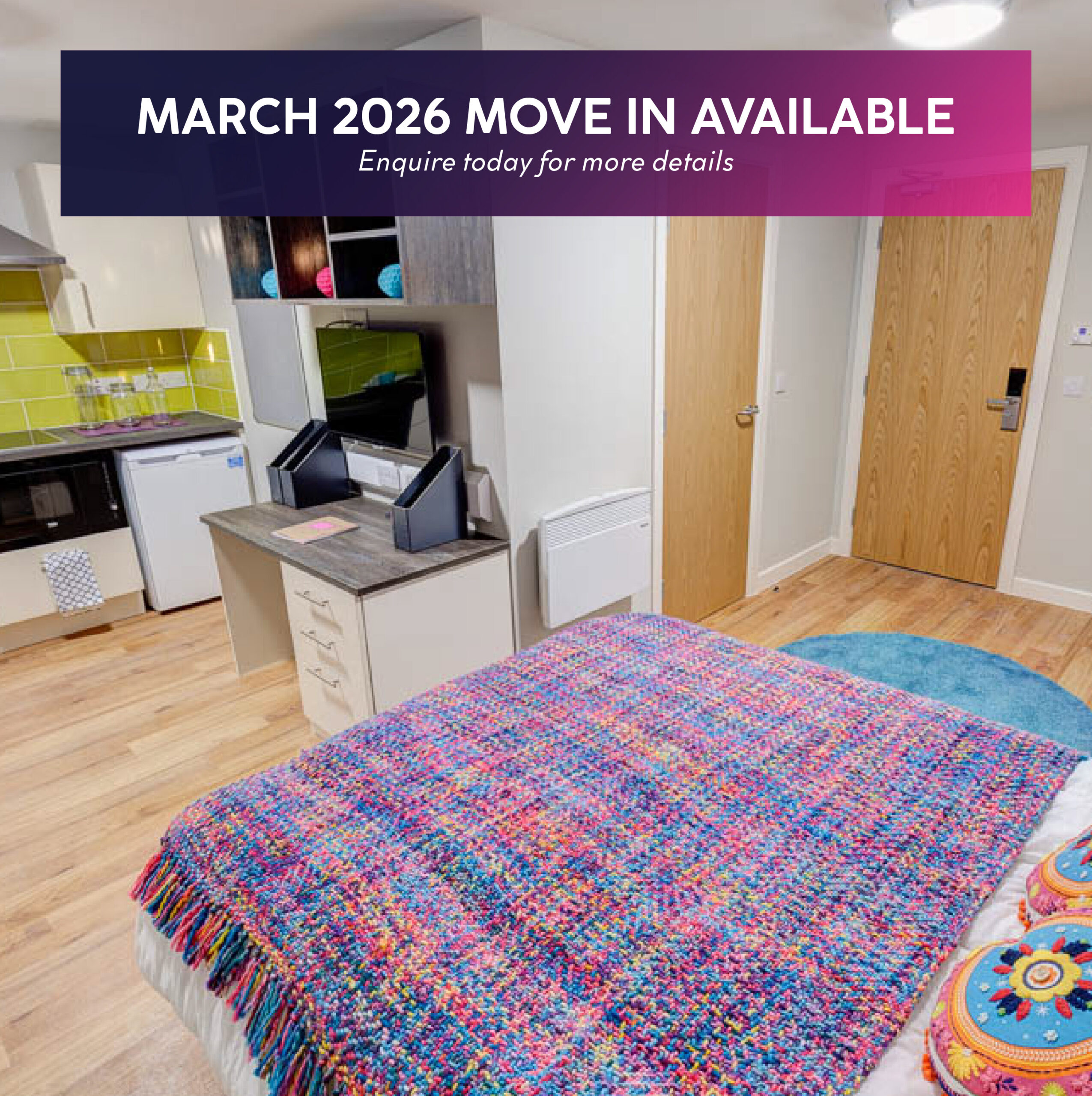 - Your rent is inclusive of bills, Complimentary Wi-Fi, on-site gym & social area.