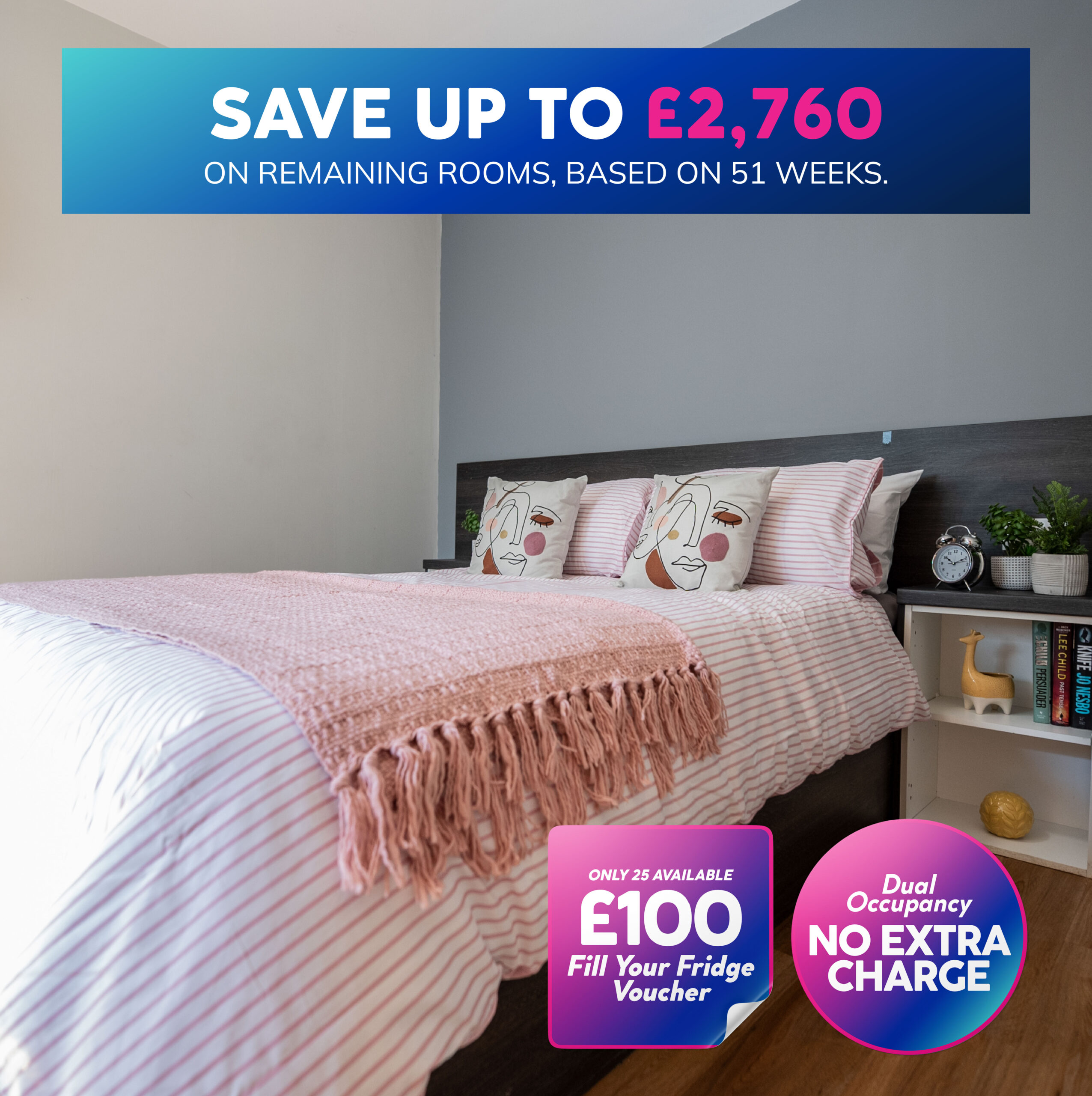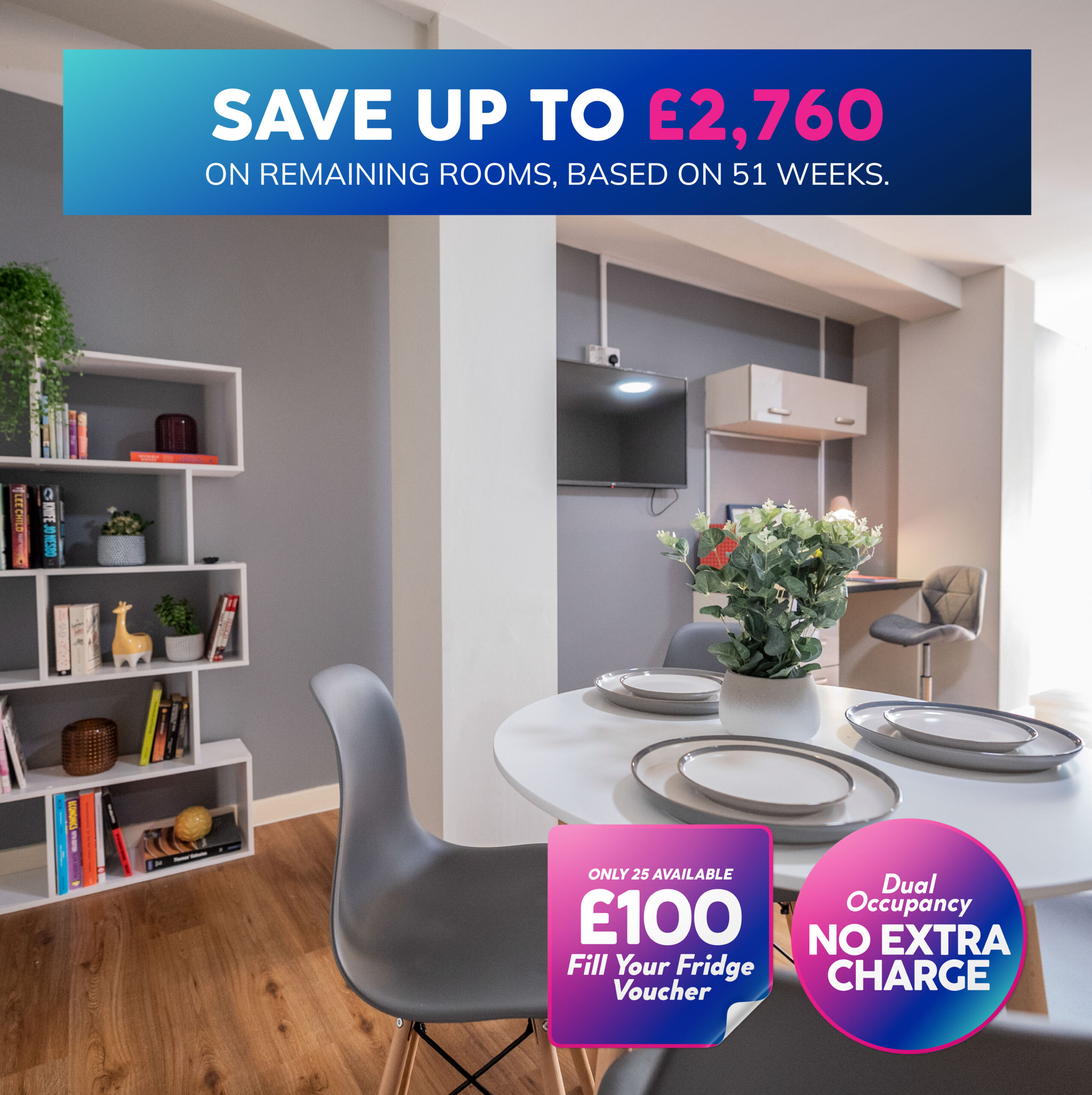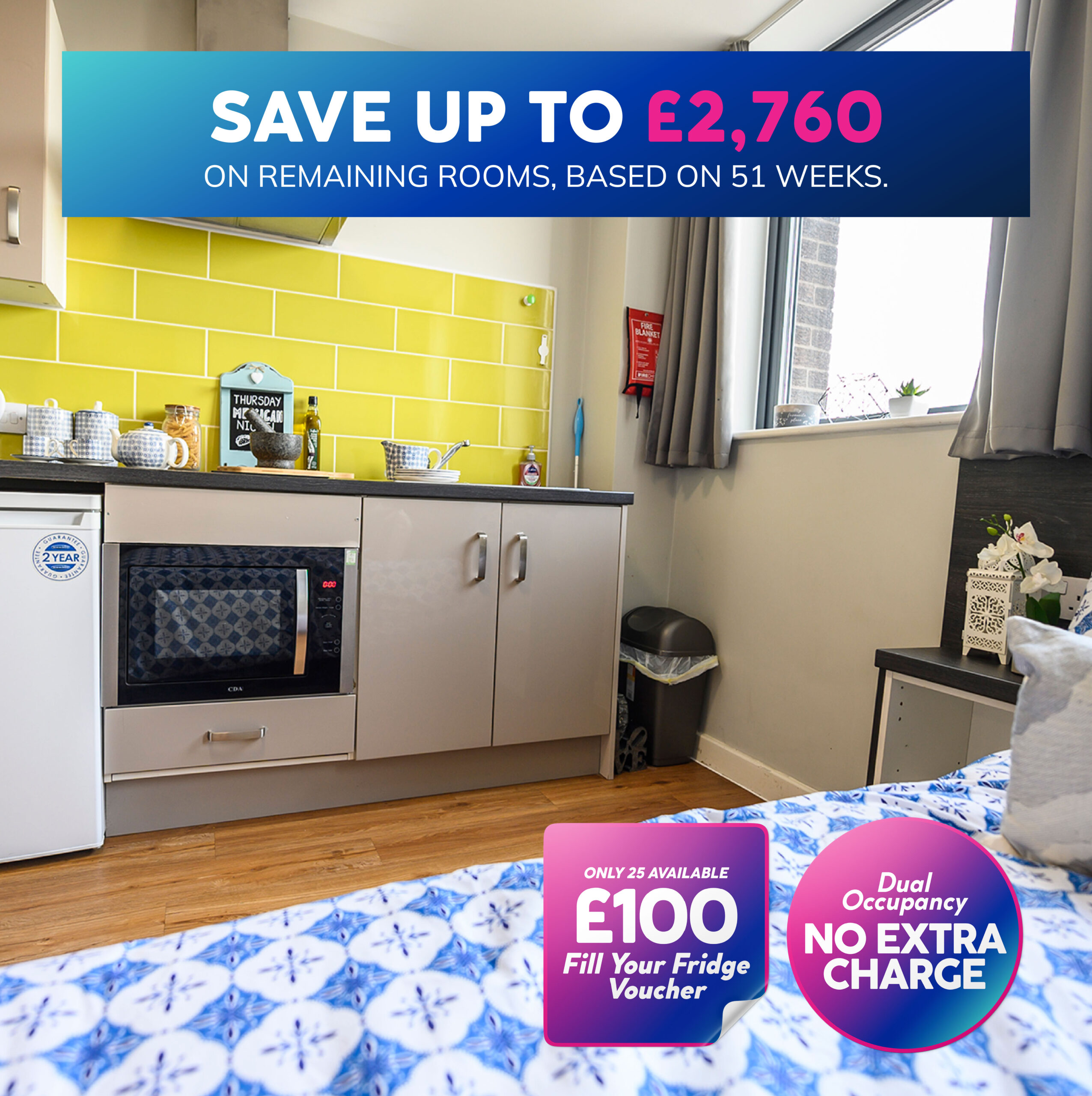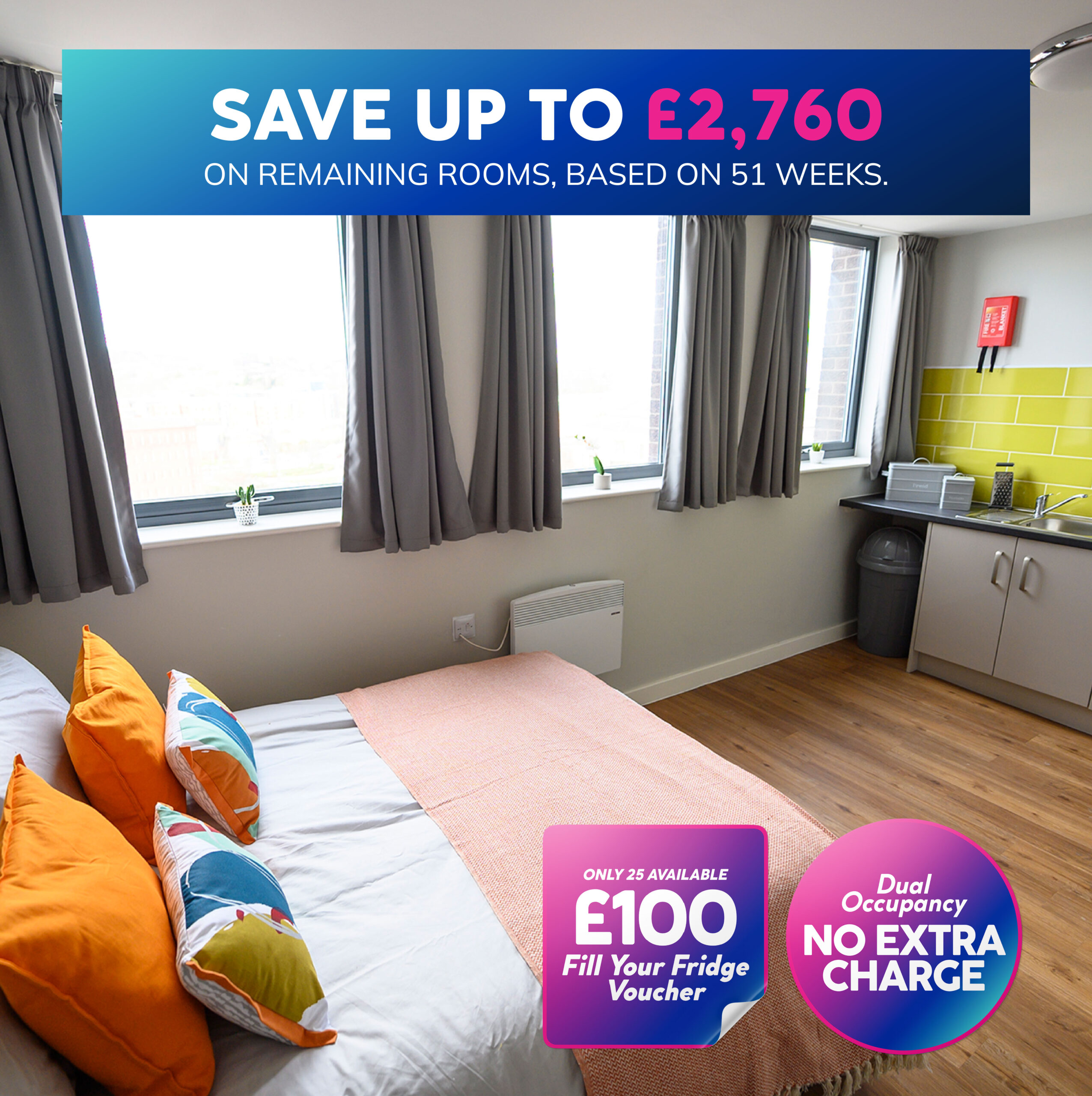 Save up to £2,760 on your annual rent on all remaining rooms for a limited time only!
